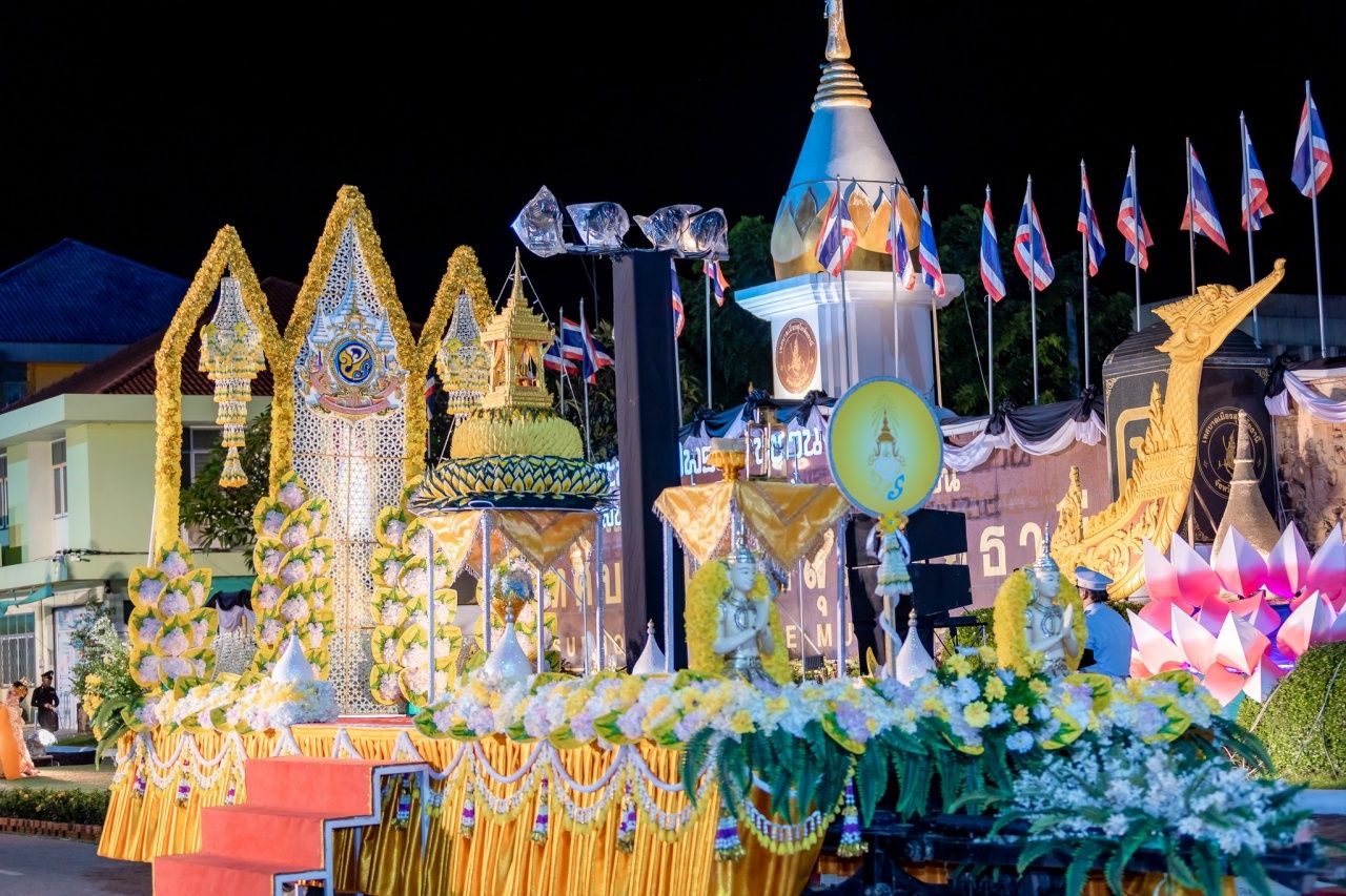 จากนั้นในเวลา 09.00 น. วันที่ 5 พ.ย. 2568 นางพัฒสอน ดอนพิมพา นายกเทศมนตรีเมืองสุโขทัยธานี พร้อมคณะผู้บริหาร ข้าราชการ และเจ้าหน้าที่ ได้ร่วมพิธีอัญเชิญไฟพระฤกษ์และพระประทีปพระราชทาน ของพระบาทสมเด็จพระเจ้าอยู่หัว สมเด็จพระนางเจ้าฯ พระบรมราชินี และพระบรมวงศานุวงศ์ รวม 11 พระองค์ แห่ไปรอบเขตเทศบาลเพื่อให้ประชาชน ตลอดจนนักท่องเที่ยว ได้ชื่นชมในพระบารมีและร่วมซาบซึ้งในพระมหากรุณาธิคุณของทุกพระองค์ ที่ทรงมีต่อพสกนิกรชาวสุโขทัย ก่อนจะอัญเชิญนำไปประดิษฐานยังแท่นพิธี บริเวณตระพังตาล ภายในอุทยานประวัติศาสตร์สุโขทัย เพื่อที่จะอัญเชิญลอยเป็นปฐมฤกษ์ในคืนวันเพ็ญเดือนสิบสอง (วันนี้) ในงานประเพณีลอยกระทง เผาเทียน เล่นไฟ จังหวัดสุโขทัย ประจำปี 2568 ณ อุทยานประวัติศาสตร์สุโขทัย ต.เมืองเก่า อ.เมืองสุโขทัย