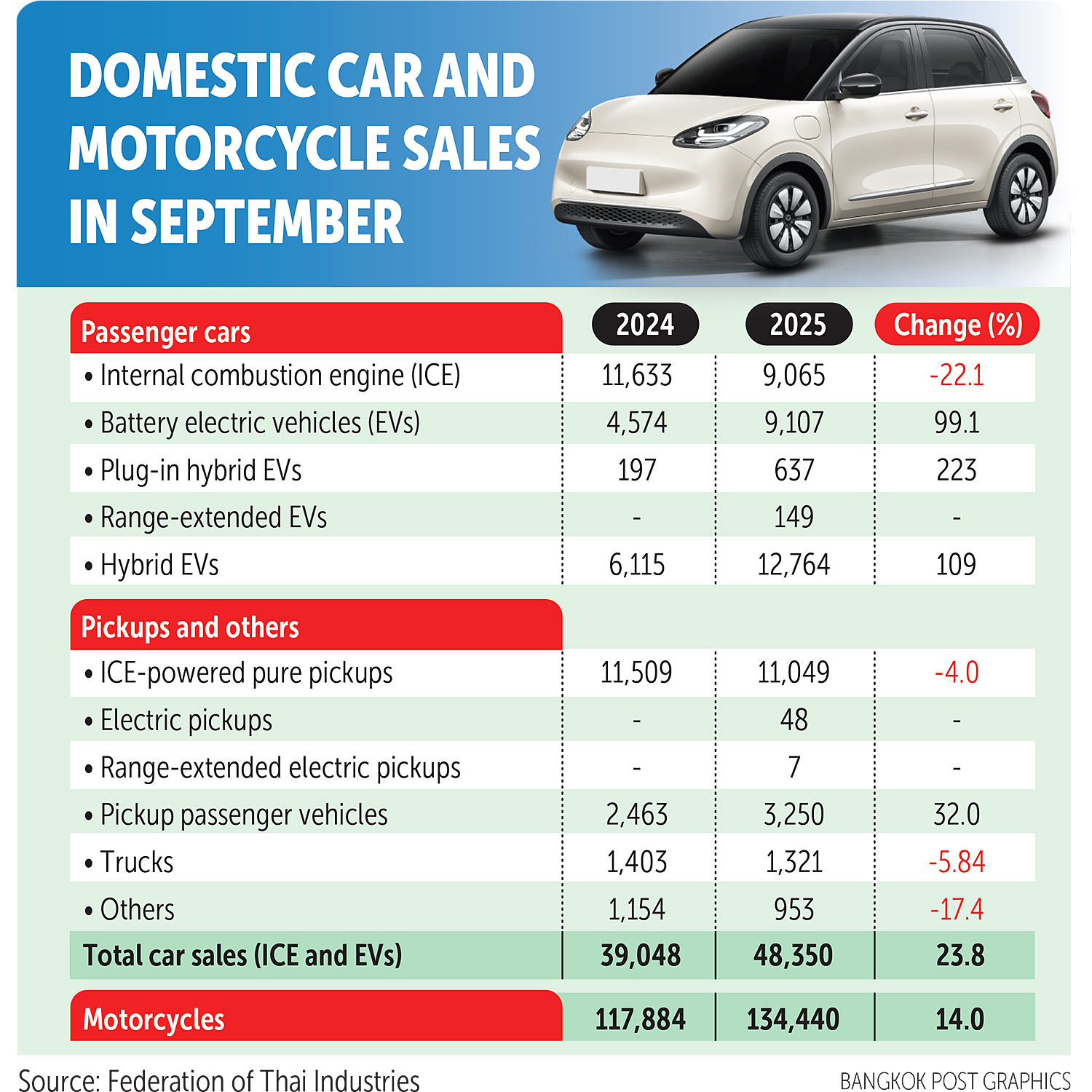 ยอดขาย BEV เพิ่มขึ้น 99% yoy ในเดือนกันยายน