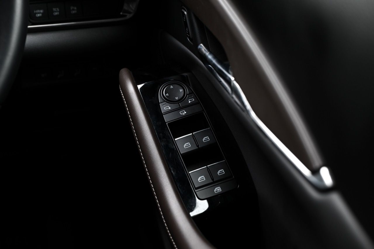 ระบบ Infotainment ครบ ระบบกุญแจรีโมทอัจฉริยะ (Smart Keyless Entry) ตกแต่งภายในด้วยแผงคอนโซลหน้าหุ้มหนังสีเทาเข้ม เบาะนั่งหุ้มหนังและผ้าสีดำ ตกแต่งด้วยด้ายสีเทา พวงมาลัยและหัวเกียร์หุ้มหนังสีดำ ตกแต่งด้วยสีเงินซาติน  ทุกที่นั่งมีพนักวางแขนด้านหลัง พร้อมที่วางแก้วน้ำ เพิ่มเติมด้วยเทคโนโลยีความปลอดภัยที่มากขึ้นกับระบบเซ็นเซอร์กะระยะด้านหลัง 4 จุด