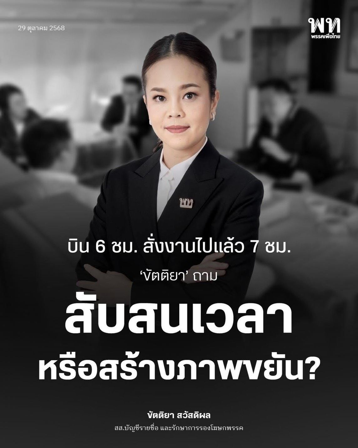 วันที่ 29 ต.ค. 2568 นายสิริพงศ์ อังคสกุลเกียรติ โฆษกประจำสำนักนายกรัฐมนตรี กล่าวถึงกรณีที่ น.ส. ขัตติยา สวัสดิผล สส.บัญชีรายชื่อ พรรคเพื่อไทย ตั้งคำถามถึงกรณีที่นายสิริพงศ์ โพสต์ถึงการเดินทางไปประเทศเกาหลีใต้ของนายอนุทิน ชาญวีรกูล นายกรัฐมนตรีและรัฐมนตรีว่าการกระทรวงมหาดไทย ที่ใช้เวลาเดินทาง 6 ชั่วโมง แต่บอกว่า สั่งงานไปแล้ว 7 ชั่วโมงนั้น “สับสนเวลาหรือสร้างภาพขยัน” ว่า “คือ มีคนสงสัยว่าบิน 6 ชั่วโมง แต่สั่งงาน 7 ชั่วโมง เป็นยังไง งง ละซิ งง คนที่ไม่เคยลงรายละเอียดงานจะไม่รู้หรอก ก่อนจะบิน เขาก็นั่งสั่งงานกันเป็น ชม. แล้วจ่ะ”