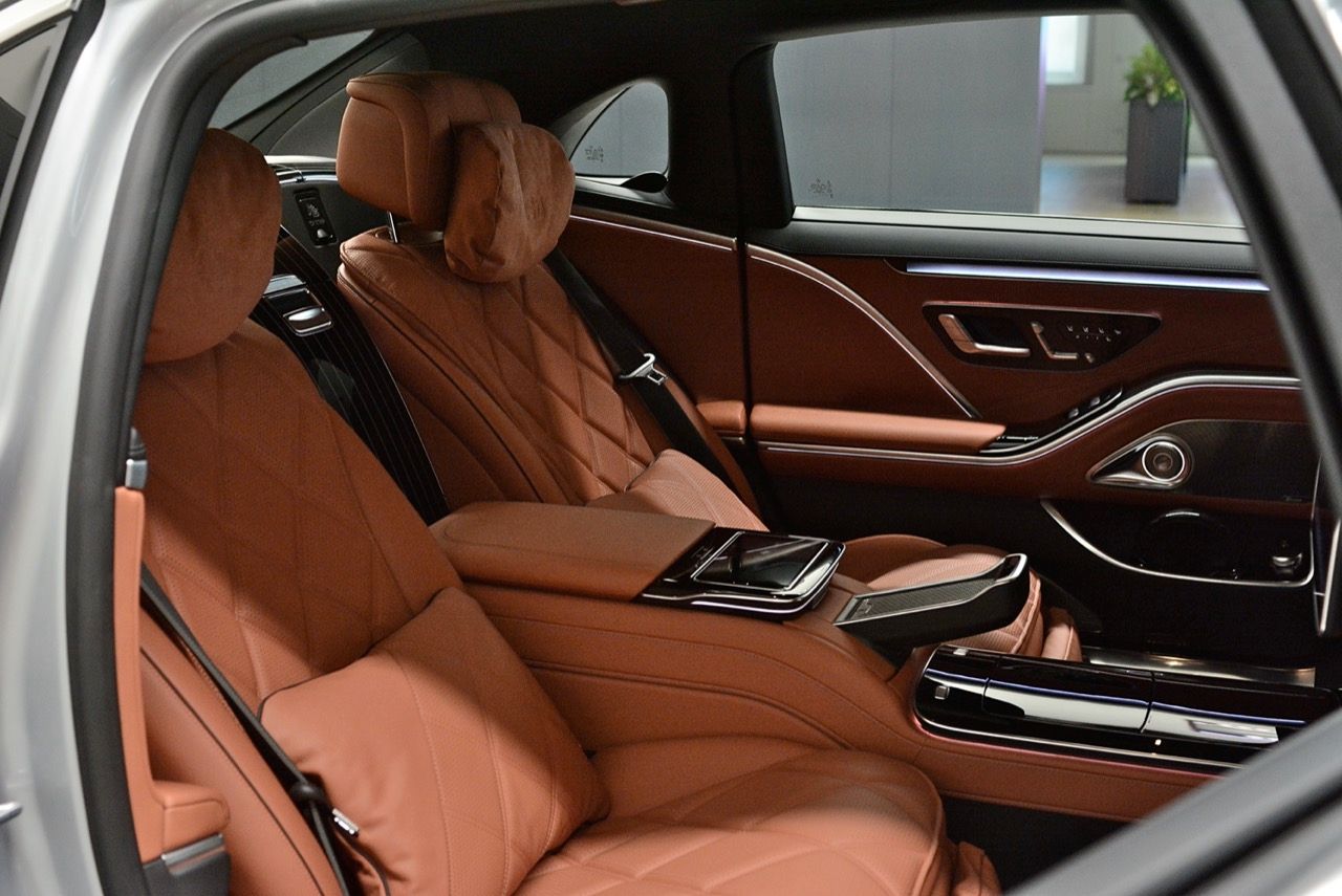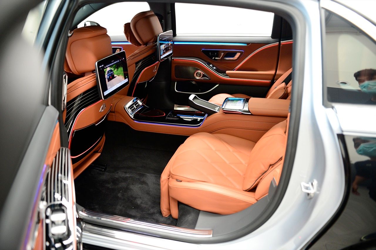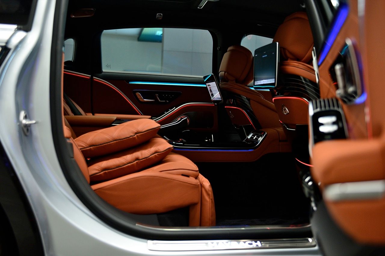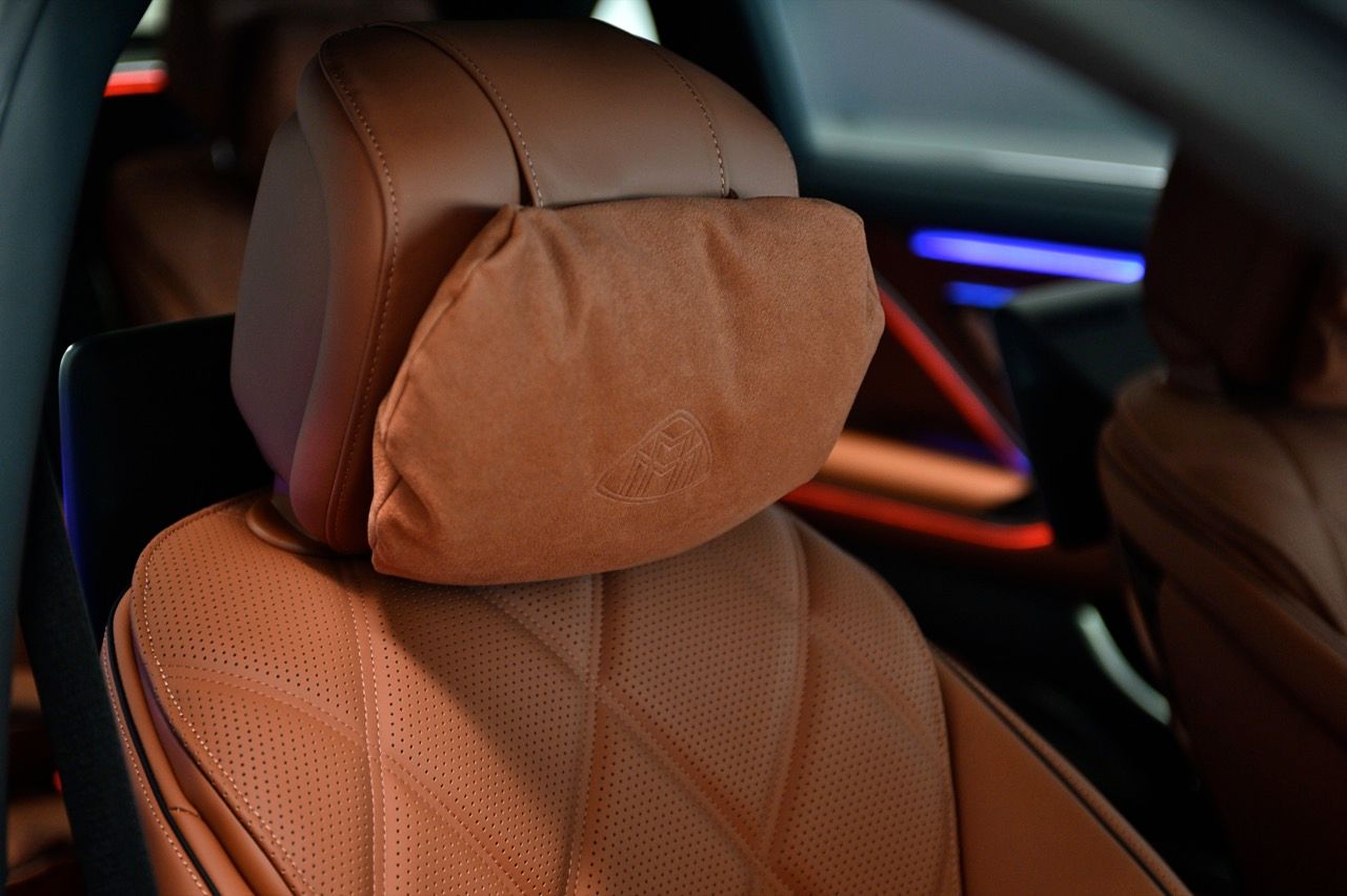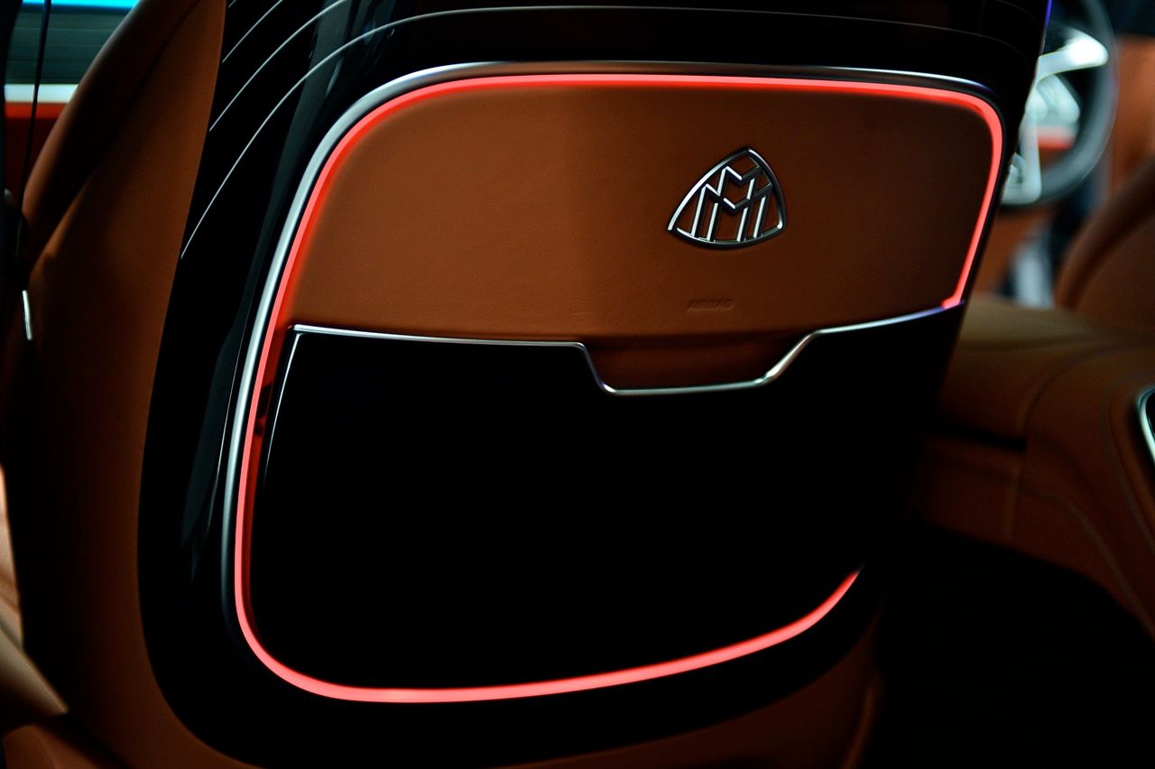 ฃห้องโดยสารตกแต่งด้วยวัสดุชั้นสูงเน้นความหรูหรามีระดับ ระบบที่นั่งด้านหลังแบบ First-Class พร้อมโต๊ะทำงานแบบพับได้ เบาะหลังแบบ First-Class ออกแบบเหมือนนั่งเจ็ตส่วนตัว คอนโซลแบบ Business เพื่อการใช้งานของผู้โดยสารเบาะหลัง Silver-plated champagne flutes (Optional Extra) แก้วแชมเปญชุบเงิน สัมผัสกับบรรยากาศพิเศษด้านหลังของ Mercedes-Maybach พื้นที่ใช้งานที่วัดปริมาณอย่างเหมาะสมบริเวณช่องเก็บสิ่งของและที่ใส่แก้วสองช่องที่ตรงคอนโซลกลางที่จะช่วยยึดแก้วไว้ขณะขับขี่ ตู้เย็นติดตั้งบริเวณด้านหลังที่เท้าแขนของผู้โดยสารตอนหลัง (Optional Extra) ช่องทำความเย็นที่ถอดออกได้ ผสานเข้ากับที่วางแขนในห้องโดยสารด้านหลัง ความจุ 10 ลิตร เพื่อแช่เครื่องดื่มขณะที่อุณหภูมิภายนอกร้อนจัด