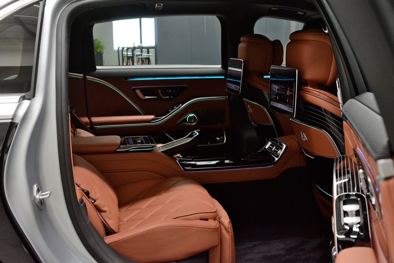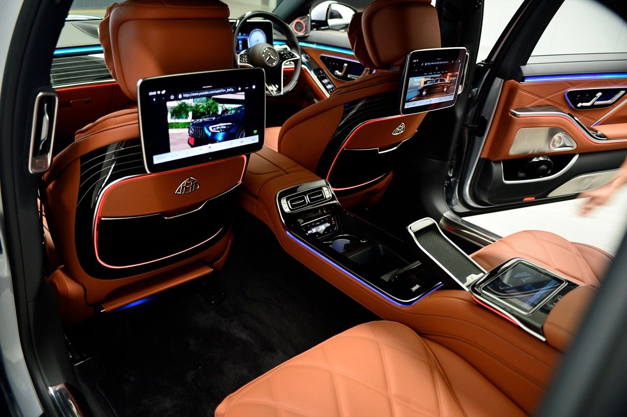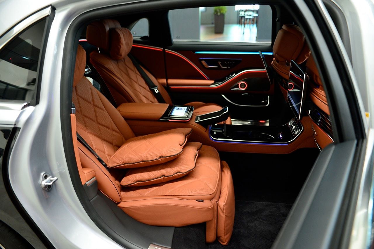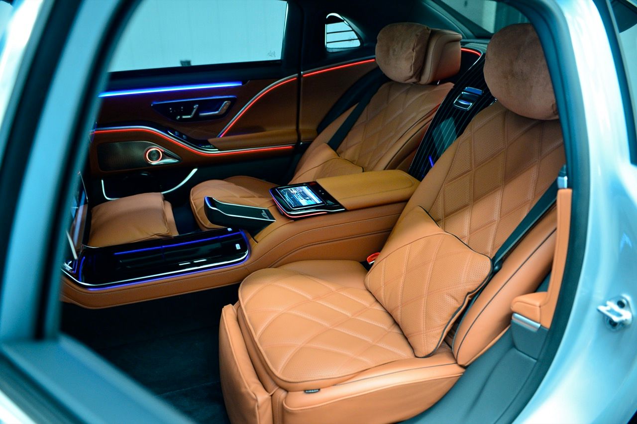 ฃห้องโดยสารตกแต่งด้วยวัสดุชั้นสูงเน้นความหรูหรามีระดับ ระบบที่นั่งด้านหลังแบบ First-Class พร้อมโต๊ะทำงานแบบพับได้ เบาะหลังแบบ First-Class ออกแบบเหมือนนั่งเจ็ตส่วนตัว คอนโซลแบบ Business เพื่อการใช้งานของผู้โดยสารเบาะหลัง Silver-plated champagne flutes (Optional Extra) แก้วแชมเปญชุบเงิน สัมผัสกับบรรยากาศพิเศษด้านหลังของ Mercedes-Maybach พื้นที่ใช้งานที่วัดปริมาณอย่างเหมาะสมบริเวณช่องเก็บสิ่งของและที่ใส่แก้วสองช่องที่ตรงคอนโซลกลางที่จะช่วยยึดแก้วไว้ขณะขับขี่ ตู้เย็นติดตั้งบริเวณด้านหลังที่เท้าแขนของผู้โดยสารตอนหลัง (Optional Extra) ช่องทำความเย็นที่ถอดออกได้ ผสานเข้ากับที่วางแขนในห้องโดยสารด้านหลัง ความจุ 10 ลิตร เพื่อแช่เครื่องดื่มขณะที่อุณหภูมิภายนอกร้อนจัด