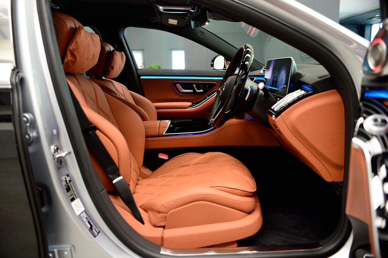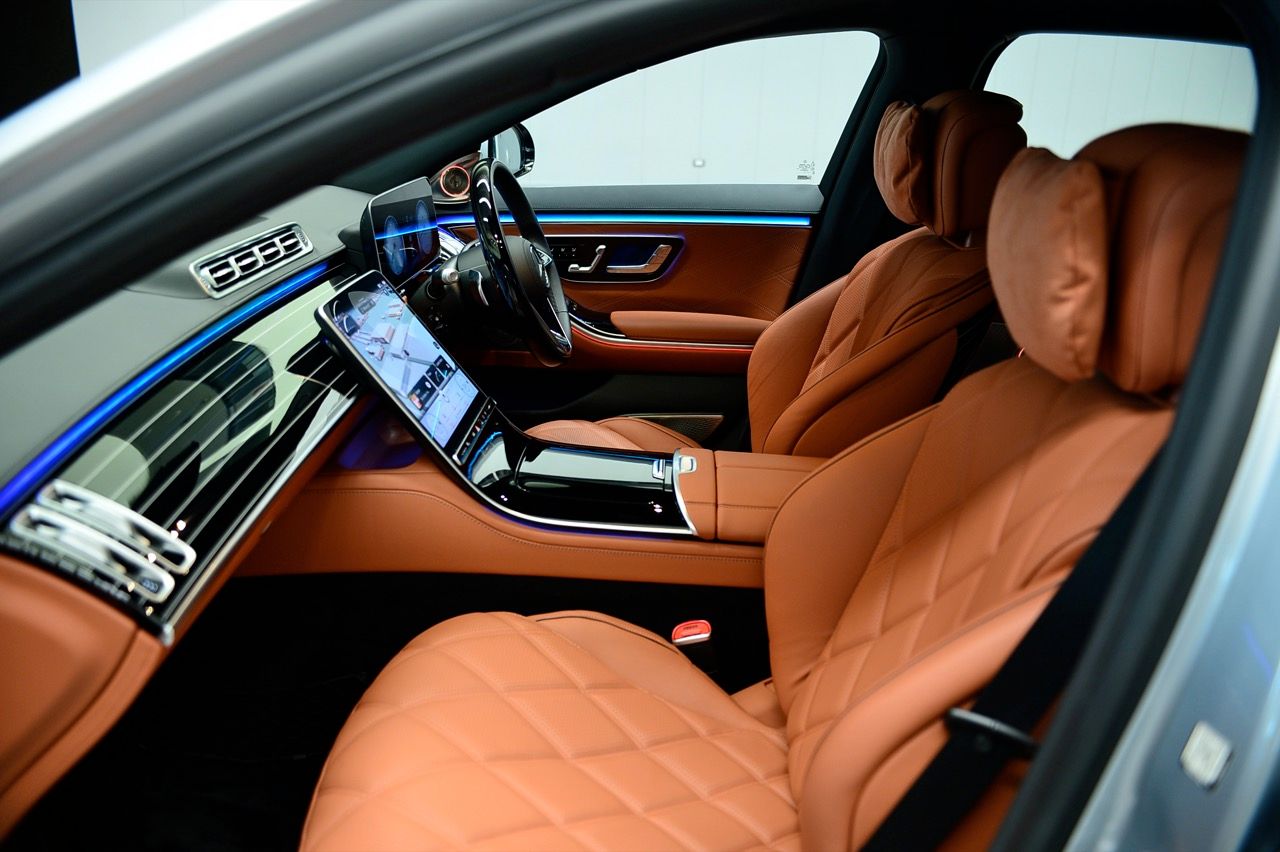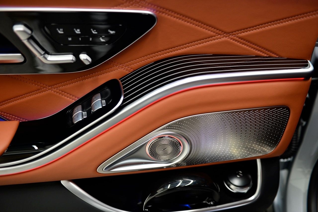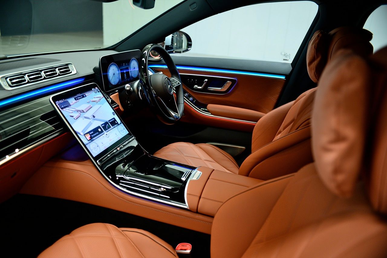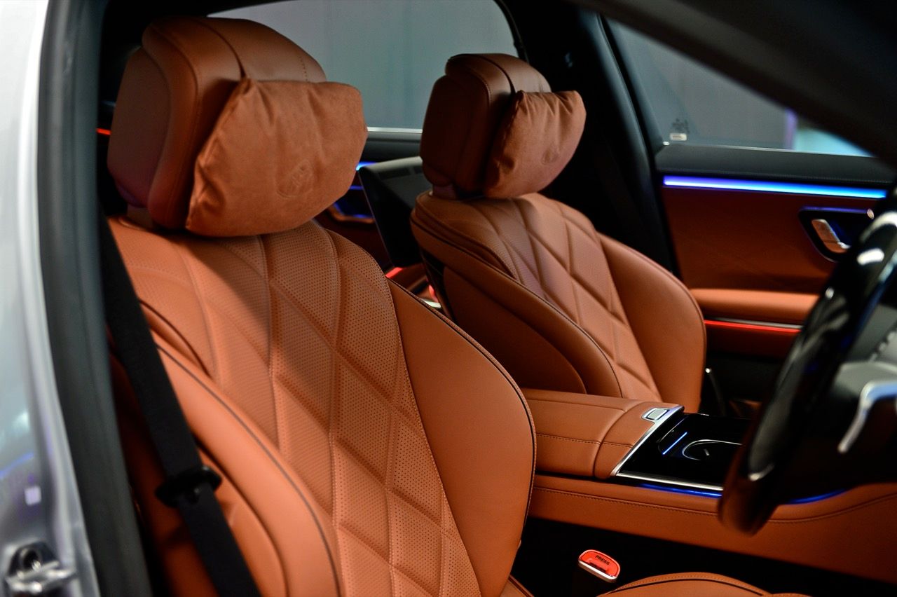 ฃห้องโดยสารตกแต่งด้วยวัสดุชั้นสูงเน้นความหรูหรามีระดับ ระบบที่นั่งด้านหลังแบบ First-Class พร้อมโต๊ะทำงานแบบพับได้ เบาะหลังแบบ First-Class ออกแบบเหมือนนั่งเจ็ตส่วนตัว คอนโซลแบบ Business เพื่อการใช้งานของผู้โดยสารเบาะหลัง Silver-plated champagne flutes (Optional Extra) แก้วแชมเปญชุบเงิน สัมผัสกับบรรยากาศพิเศษด้านหลังของ Mercedes-Maybach พื้นที่ใช้งานที่วัดปริมาณอย่างเหมาะสมบริเวณช่องเก็บสิ่งของและที่ใส่แก้วสองช่องที่ตรงคอนโซลกลางที่จะช่วยยึดแก้วไว้ขณะขับขี่ ตู้เย็นติดตั้งบริเวณด้านหลังที่เท้าแขนของผู้โดยสารตอนหลัง (Optional Extra) ช่องทำความเย็นที่ถอดออกได้ ผสานเข้ากับที่วางแขนในห้องโดยสารด้านหลัง ความจุ 10 ลิตร เพื่อแช่เครื่องดื่มขณะที่อุณหภูมิภายนอกร้อนจัด