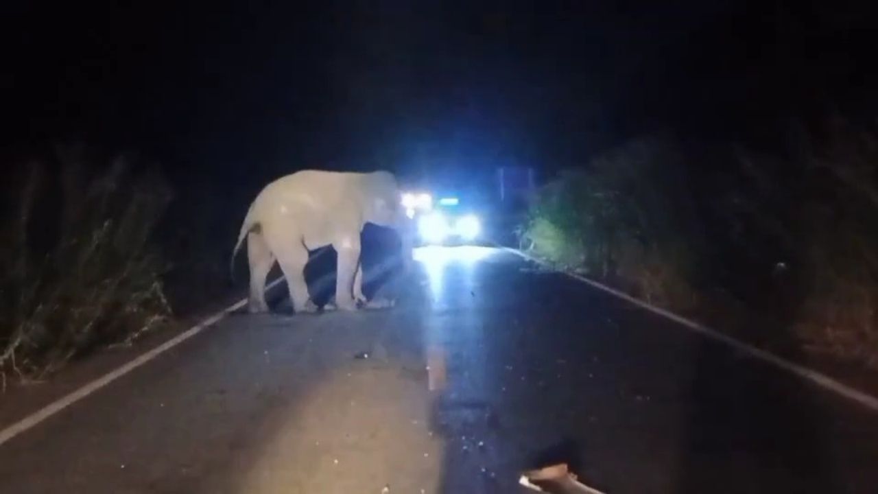 เจ้าหน้าที่ชุดระวังฯ เร่งติดตามอาการบาดเจ็บของ “ช้างป่าเขาอ่างฤาไน” หลังเกิดอุบัติเหตุถูกรถกู้ภัยชน ระหว่างนำผู้ป่วยส่งต่อ รพ.สนามชัยเขต บริเวณถนนบ้านนายาว-คลองเตย จ.ฉะเชิงเทรา